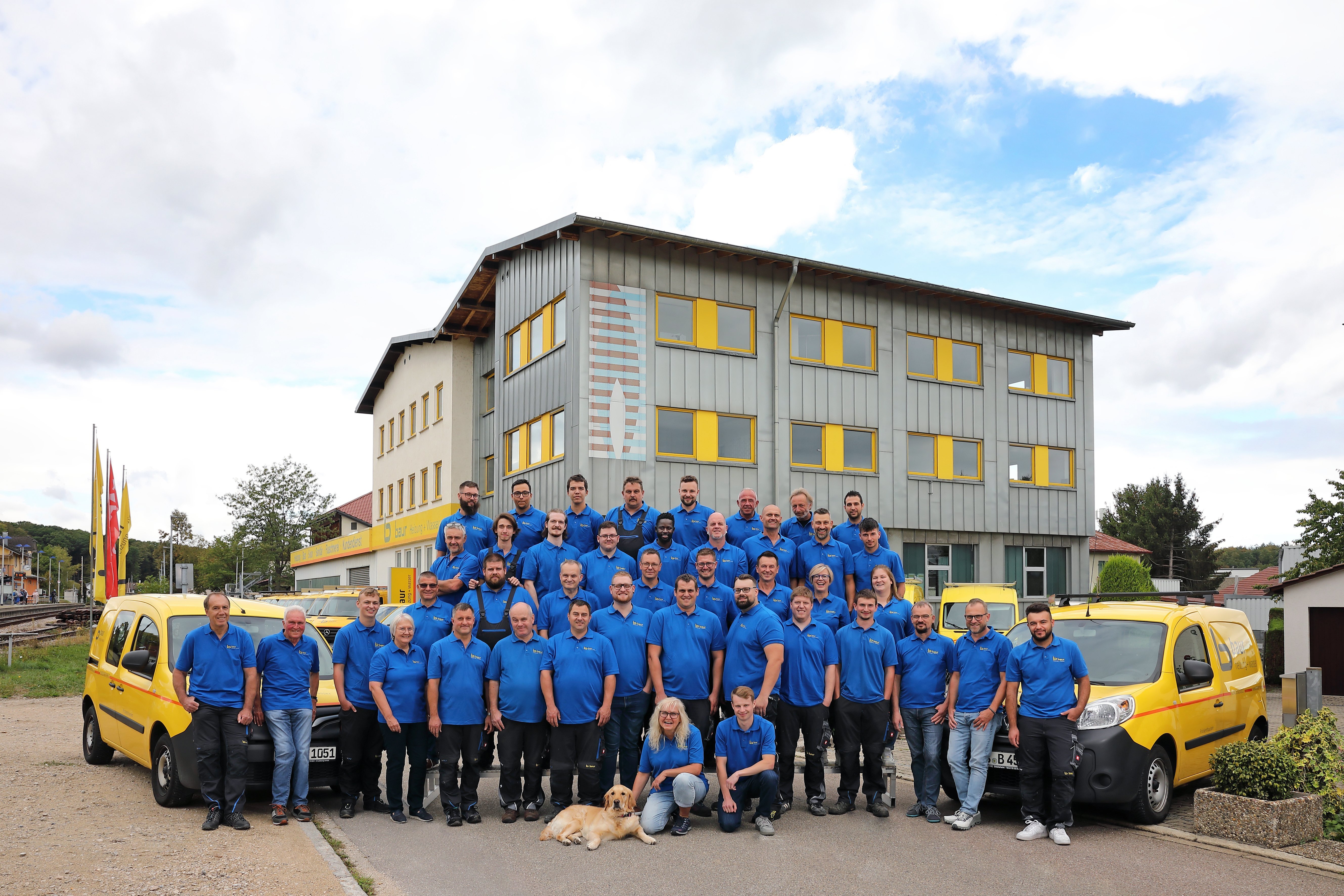 Aktuelles Teamfoto vor dem Firmengebäude