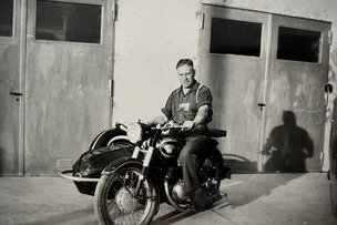 Adolf Baur III mit einem der ersten Firmenfahrzeuge