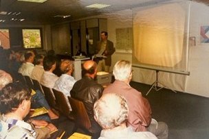 Die Firma Baur veranstaltet erste Fachvorträge für Kunden und Interessenten. Themen waren Heizungsmodernisierung und neue Vorschriften für die Lagerung von Heizöl. Die Vorträge fanden damals noch in den ausgeräumten Büroräumen statt, da es noch keinen Vortragsraum gab.